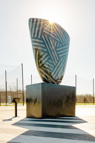 This larger-than-life sculpture is inspired by Pop art and playfully explores the concept of peeling open the earth. Known for incorporating humor into his work, Elzinga's creation has gained international recognition, appearing in public galleries in Portugal and Minnesota, where it has become a sensation.