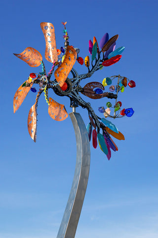In the late 1990s, he shifted his focus to sculpture, beginning with copper in 1998. By 1999, sculpture became his full-time pursuit, marking the start of a 25-year career in the medium. His work continues to evolve, shaped by curiosity, craftsmanship, and a passion for connecting with audiences through form and movement.