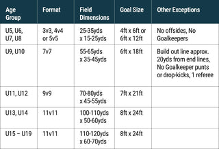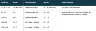 2. Field Markings and Field Dimensions by age group shall conform to the US Soccer Small-Sided Games recommendations as noted below.
