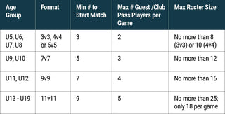 8. All guest players must be added to the match card and have a player pass. The following information MUST be written on the game card: Player’s full name, ID #, jersey #, division of primary team. (i.e.: Joe Smith, SM01012001, #15, D2) (i.e.: Joe Smith, SM01012001, #15, D2) All guest players must be registered from the same carding entity as the team they are guest playing for, such as US Club or US Youth. The team may not utilize players from different registration entities. This will result in a game forfeit should the team have players from both registration entities.