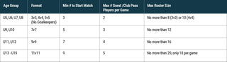 Note: Players rostered on teams playing in the Academy, US Youth National Leagues, ECNL, NPL and any other League competing at a regional level are considered to be in the Top Division of their own age group and higher for guest playing opportunities.