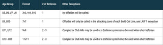 2. Offsides are only called in U9 – U10 Age Groups in the attacking zone of each Build-Out Line, see LAW 1 exception.