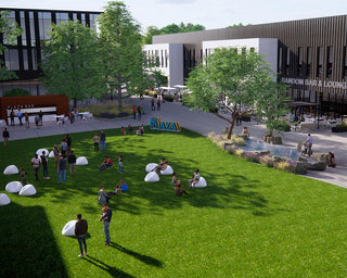 The central plaza is the heart of the development’s village and will play host to many events including sporting event watch parties and live entertainment.