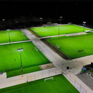 Paragon Star shines with the installation of MUSCO LED lighting solutions. The Championship Field, Field #1, is illuminated with an impressive 75 footcandles, ensuring optimal visibility and performance for athletes and spectators. The other nine fields feature 50 footcandles, maintaining excellent visibility throughout the facility. In total, the Sports Complex is equipped with 380 LED lights.