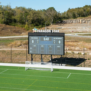 Paragon Star boasts state-of-the art scoreboards, including one large stadium display and four multi-field displays, enhancing the spectator experience. The stadium display, standing 19 feet tall and 39 feet wide with a 10mm dot pitch, delivers crisp visuals and clear graphics. Complemented by a high-definition Electro Voice audio system, it ensures excellent sound quality. The four multi-field displays, each 6.81 feet by 16.40 feet with a 6mm dot pitch, provide vibrant imagery and essential game information. These advanced scoreboards offer an immersive viewing experience, elevating the atmosphere at Paragon Star Sports Complex.